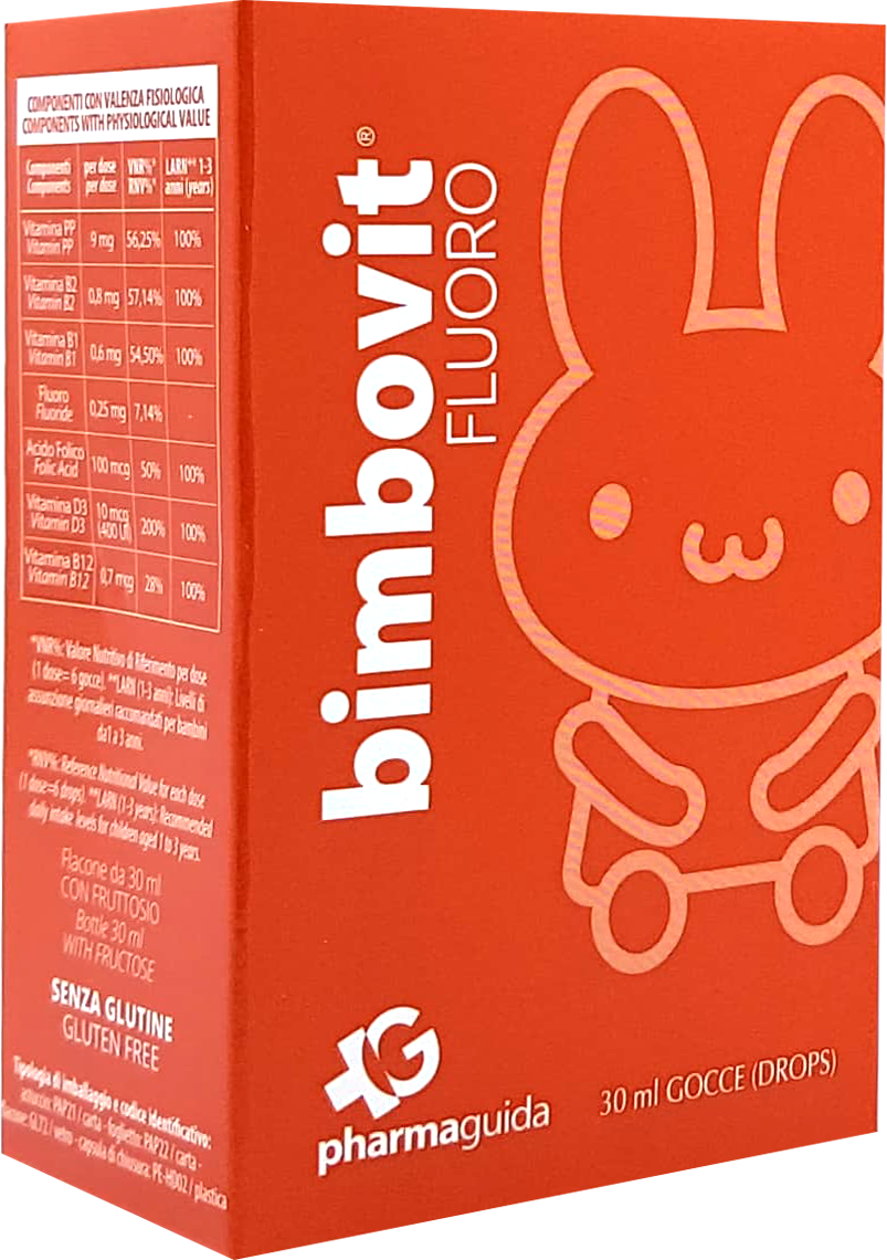 Bimbovit FLUORO është një suplement ushqimor multivitaminik me fluor. Vitamina D3 kontribuon në funksionimin normal të sistemit imunitar, duke ruajtur nivelet normale të kalciumit në gjak dhe duke ruajtur shëndetin e kockave dhe dhëmbëve; vitaminat e grupit B kontribuojnë në metabolizmin normal të energjisë.