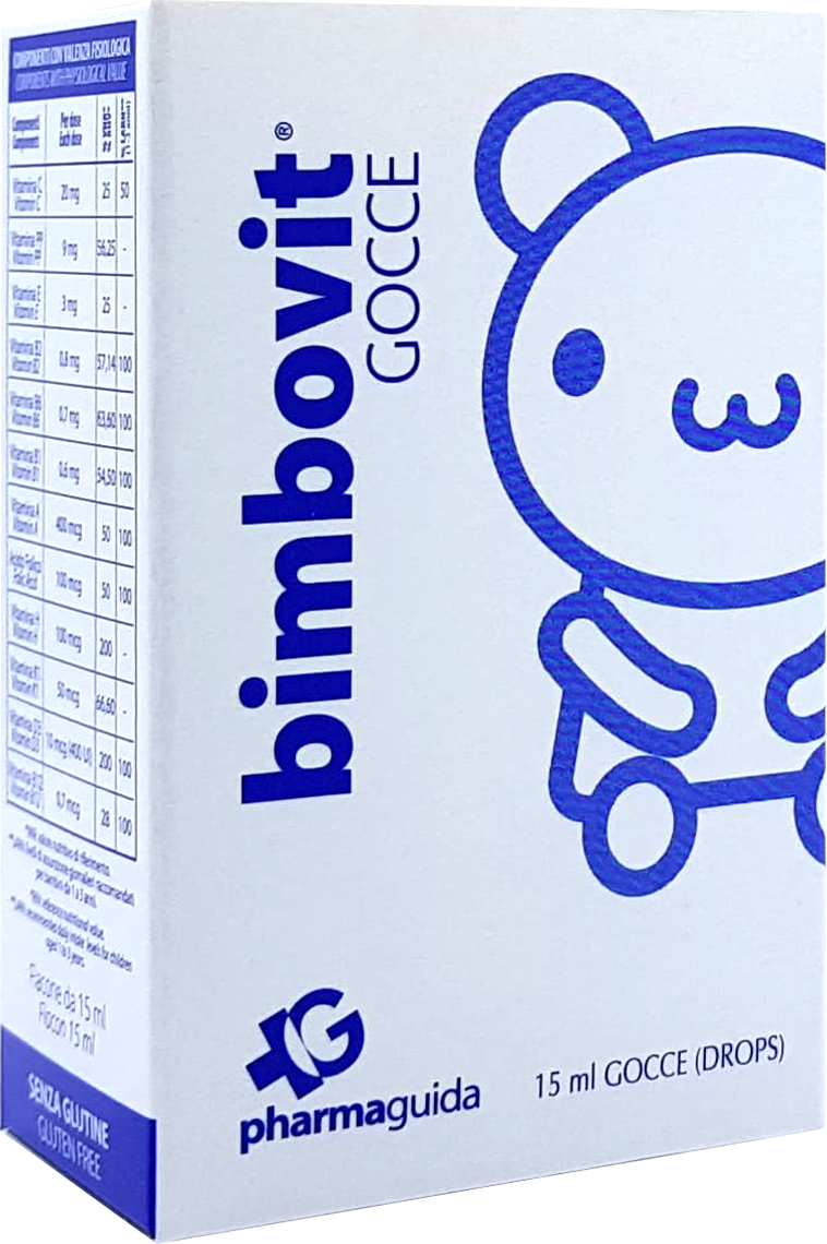 Bimbovit GOCCE (PIKA) është i indikuar për të plotësuar mungesën ose nevojën e shtuar për këto lëndë ushqyese. Me ëmbëlsues. Vitamina C, acidi folik, vitamina D, vitamina A kontribuojnë në funksionimin normal të sistemit imunitar; vitaminat e grupit B (B1, B2, B3, B6, B12 dhe H) kontribuojnë në metabolizmin normal energjik; vitamina D kontribuon në mirëmbajtjen e kockave dhe dhëmbëve normalë; vitamina E kontribuon në mbrojtjen e qelizave nga stresi oksidativ; vitamina K kontribuon në mpiksjen normale të gjakut.